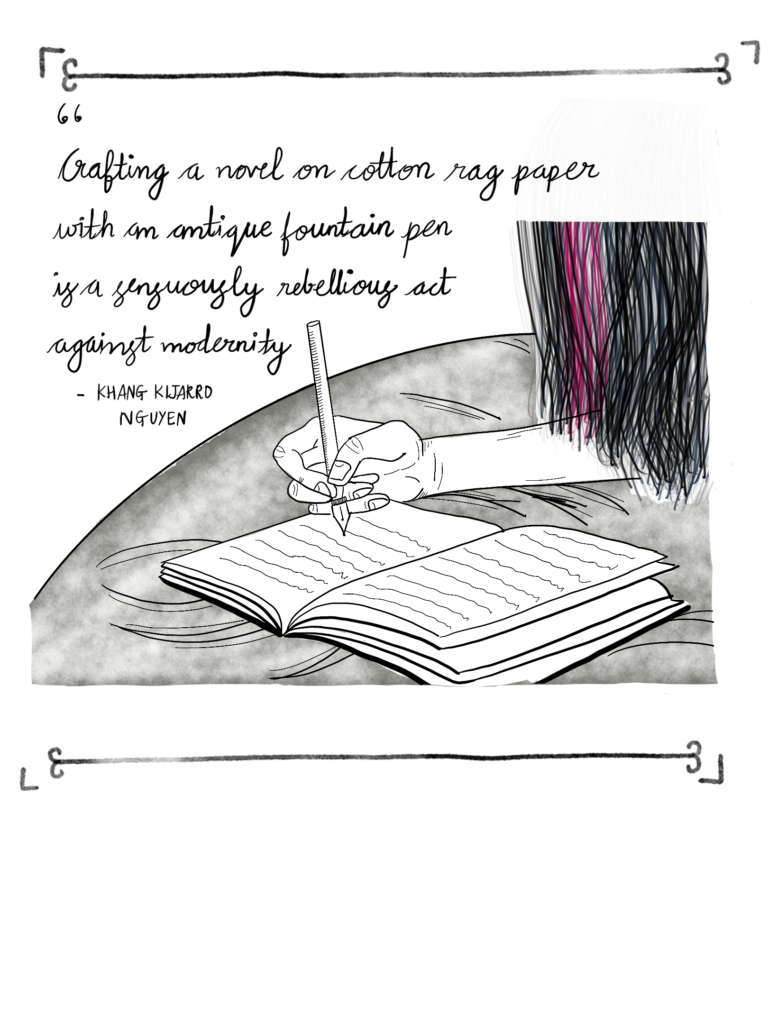 When you use a fountain pen, there is something very sensual about the whole act of writing, that cannot be replicated by the thumbing on a touch screen or the clickety clacks of the keyboard. When you write, your thoughts slow down, going deeper instead of faster and the word itself glistens with wet ink. The thicker the line, the more visceral and satisfying this way of writing feels.